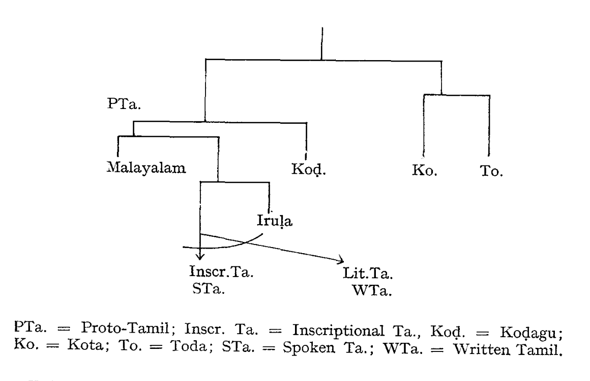 The linguistic situation in the extreme South of India, as it might have prevailed (simplified, of course, very considerably) sometime between the 4th-2nd Cent. B.C., can be represented by the following diagram: